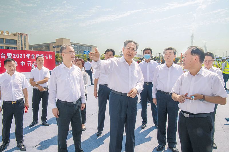 7月31日,加快打造創(chuàng)新平臺(tái)暨2021年全省第七批重大項(xiàng)目集中開工動(dòng)員會(huì)在六安市舉行,省委書記李錦斌、省長(zhǎng)王清憲出席集中開工動(dòng)員會(huì)。圖為省領(lǐng)導(dǎo)在了解開工企業(yè)投資運(yùn)行情況。 記者 李博 攝